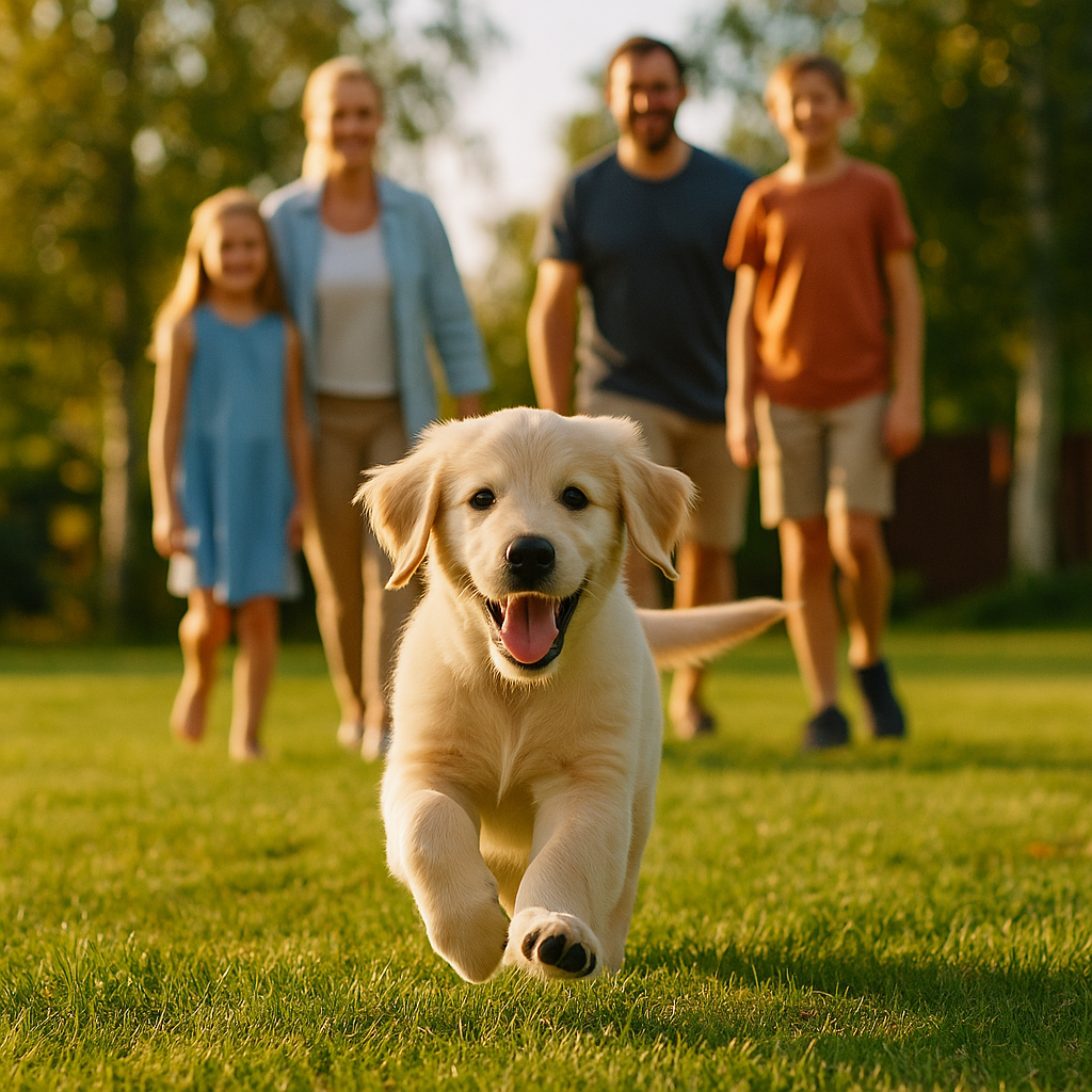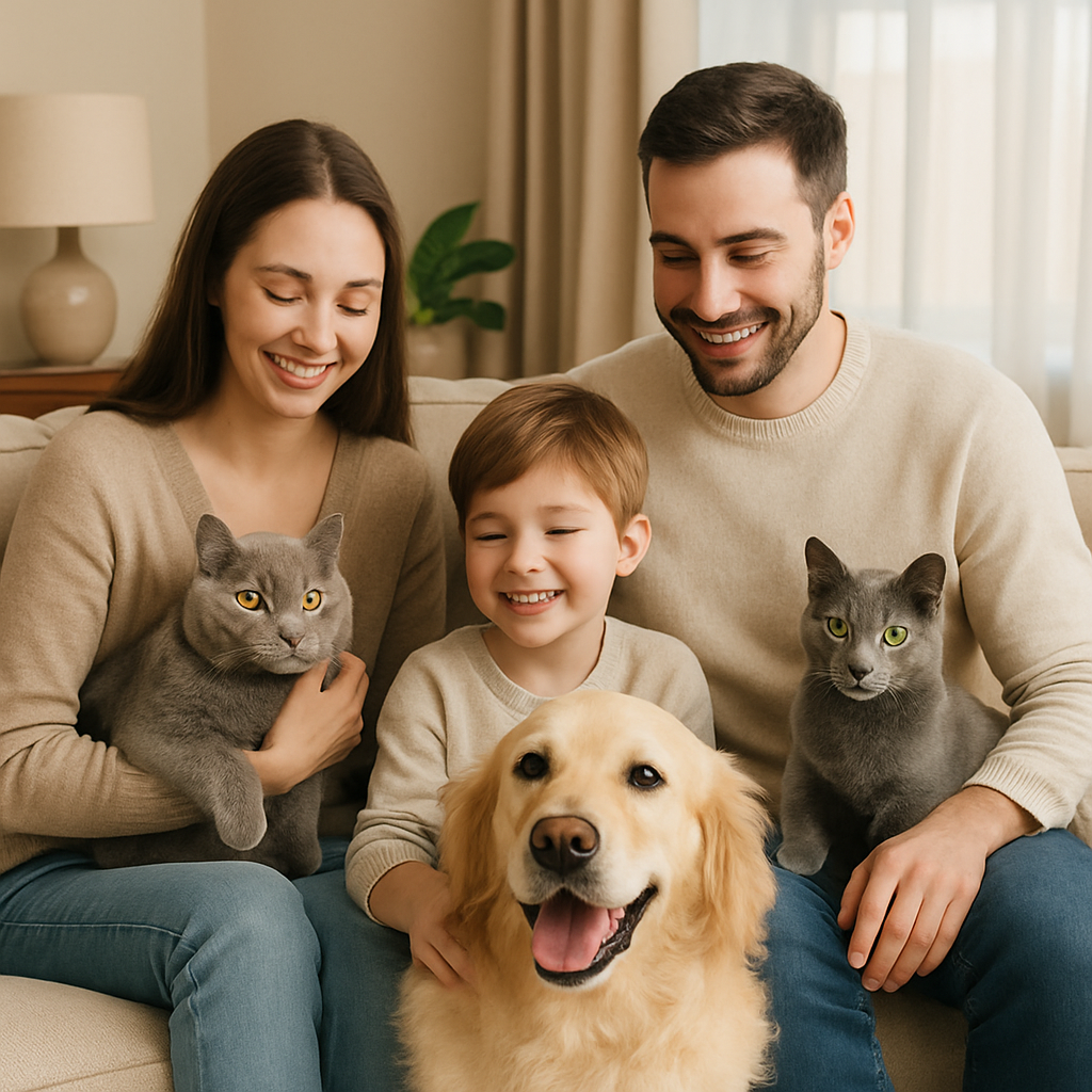 Unsere Golden Retriever Hündin, unsere Britisch Kurzhaar Katze und unser Russisch Blau Kater gehören genauso zu unserem Alltag wie unser gemeinsames Frühstück oder das Spielen im Garten.